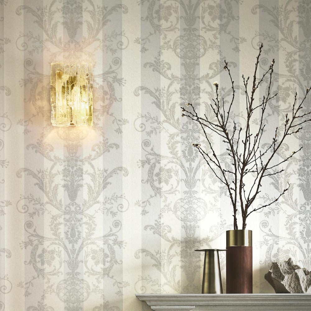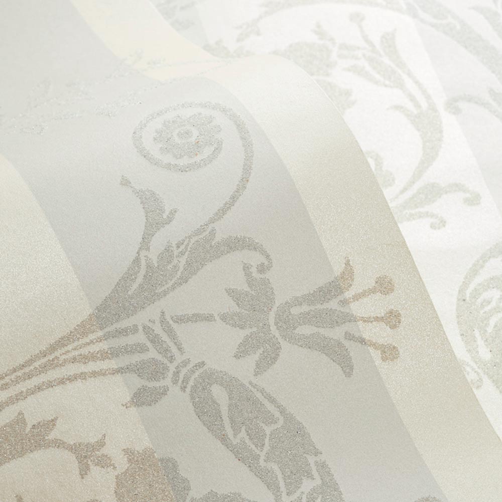 高級感あるダマスク柄にガラスビーズをあしらったラグジュアリーな壁紙です。不燃認定商品ですので、ホテルをはじめとする内装制限がある空間にも安心してお使いいただけます。