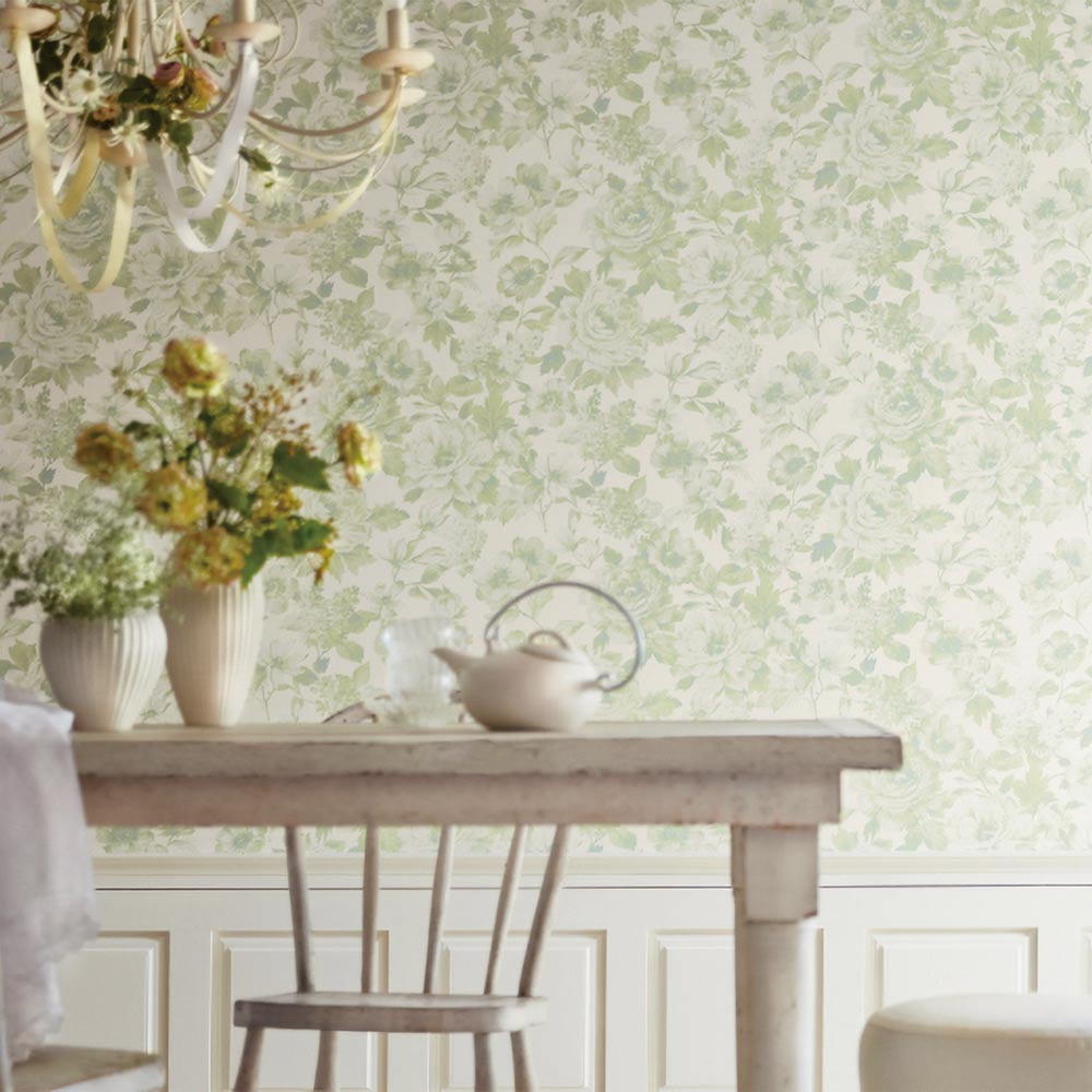 複雑に印刷版を重ねて作られたフラワー柄のビニル壁紙です。