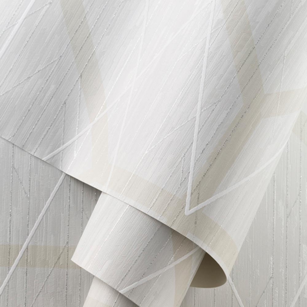 製法にこだわり、モダンで高級感あるテクスチャーを持つ幾何学柄のビニル壁紙です。