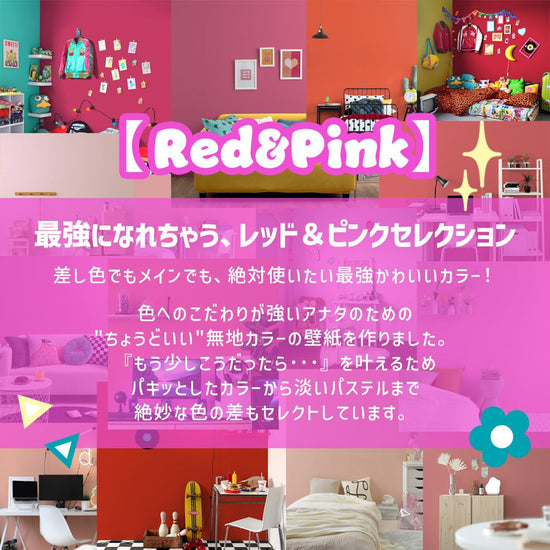 【サンプル】はがせる壁紙 のりなしタイプ What's poppin? 無地 ピンク・レッド RD102