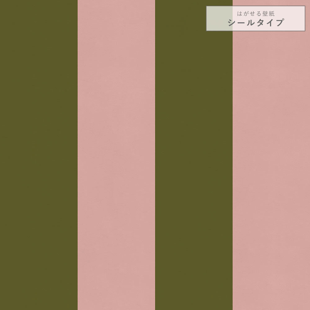 【サンプル】はがせる壁紙 シールタイプ ロンドンストライプW2 TKH-LS208 モスグリーン×ピンク