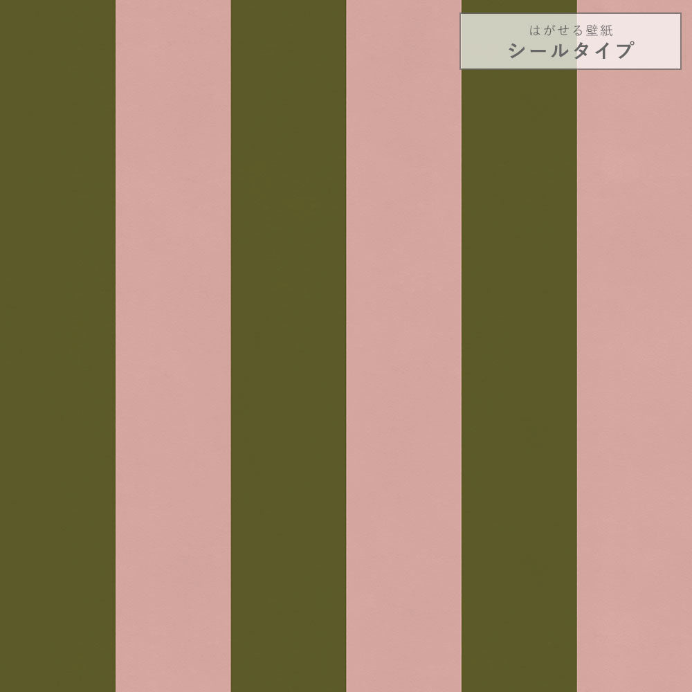 【サンプル】はがせる壁紙 シールタイプ ロンドンストライプW3 TKH-LS308 モスグリーン×ピンク