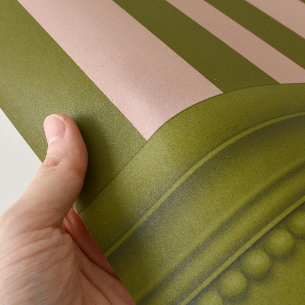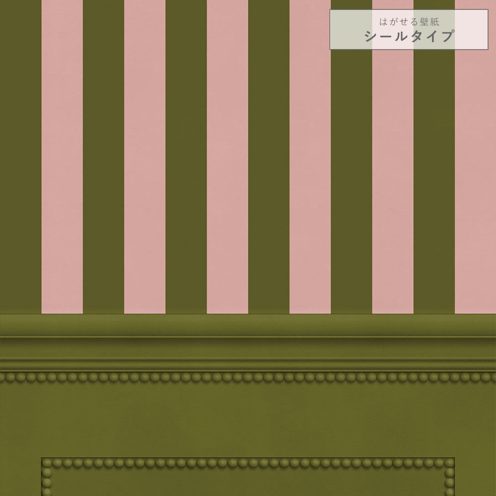 【サンプル】はがせる壁紙 シールタイプ ストライプ切り替えパネル TKH-SPK04 モスグリーン×ピンク