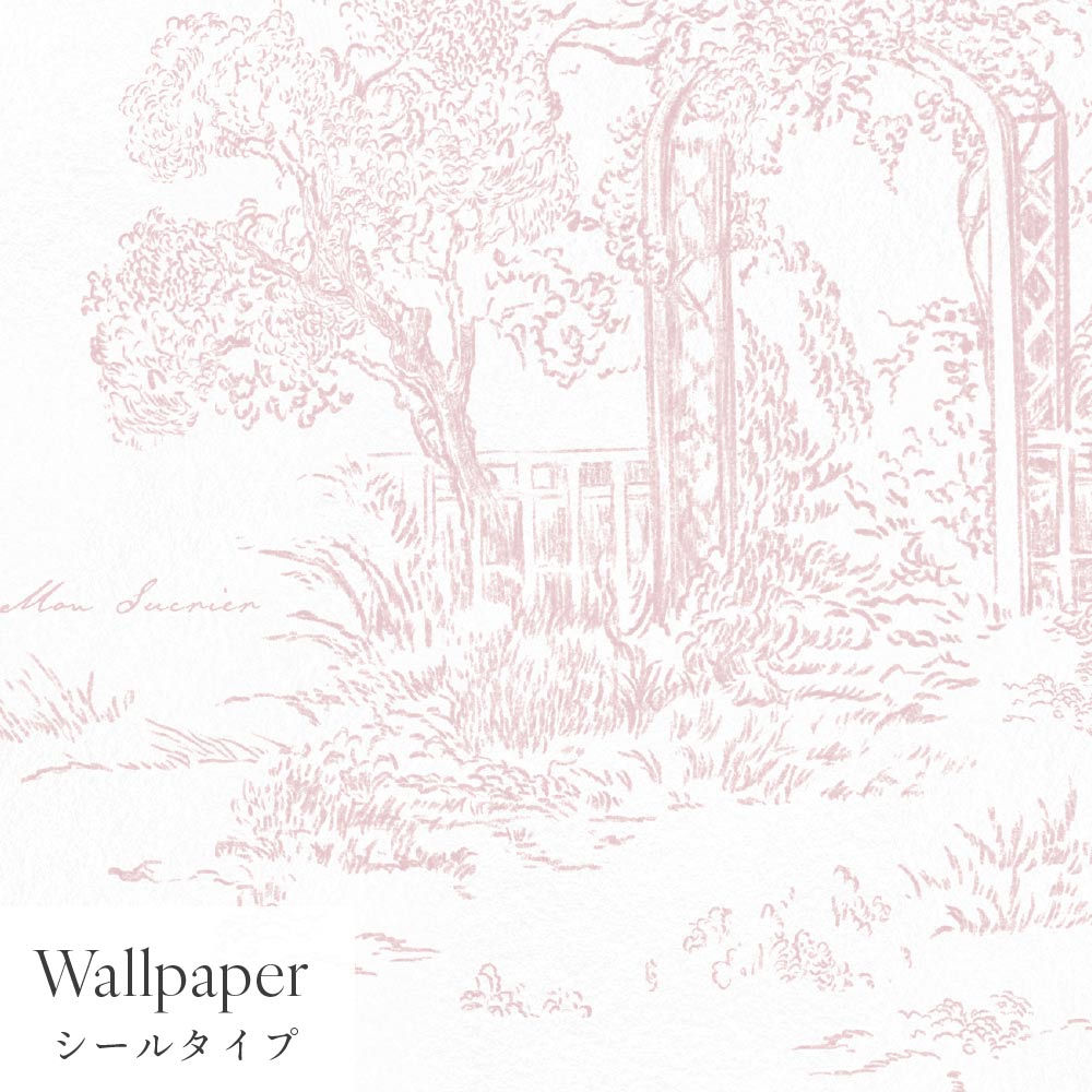 【サンプル】はがせる壁紙 シールタイプ Mon Sucrier トワル柄 トワル・ガーデン TMS-TG02 ロゼ