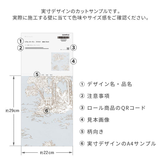 【サンプル】はがせる壁紙 シールタイプ Mon Sucrier トワル柄 トワル・ガーデン TMS-TG04 クラウド