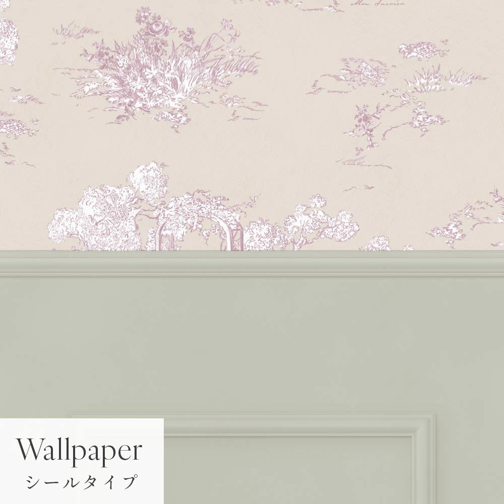 人気のトワル柄壁紙に腰壁のデザインを合わせて。