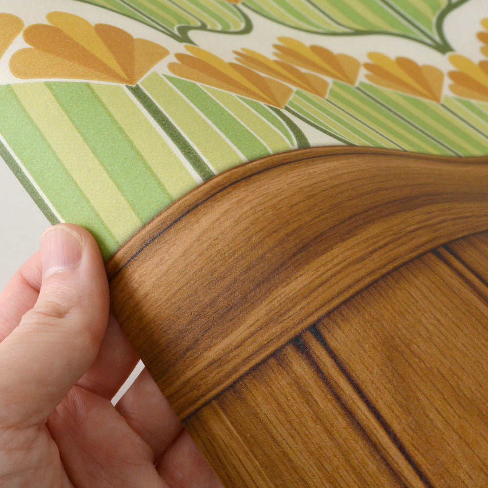 人気のReビンテージウォールペーパーシリーズとウッドパネルのデザインを組み合わせました。