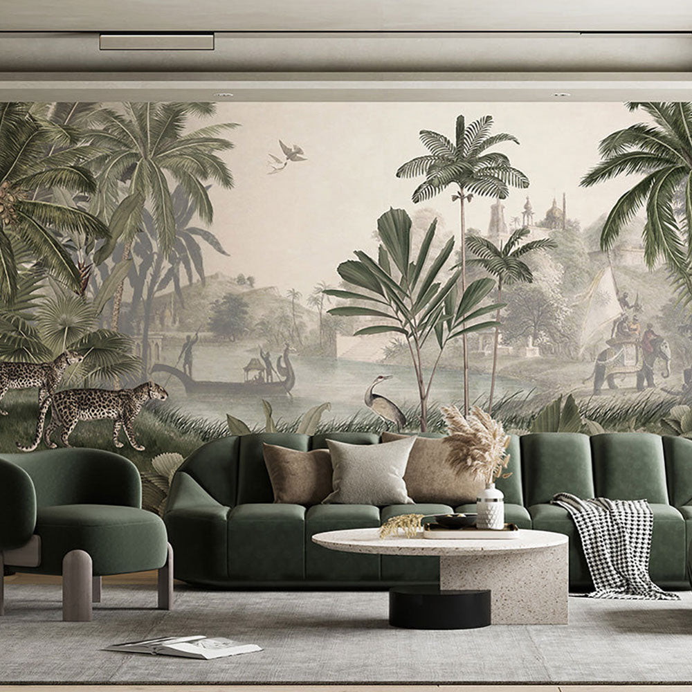 【サンプル】はがせるミューラル壁紙 シールタイプ Sir Edward Leopard Landscape Green W13375
