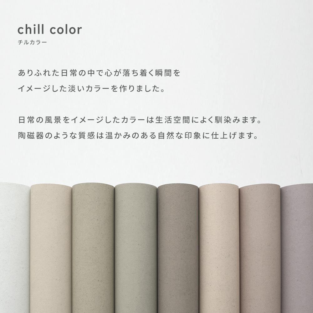 日常の風景をイメージしたカラーは生活空間によく馴染みます。素焼きの陶器のような質感は温かみのある自然な印象に仕上げます。