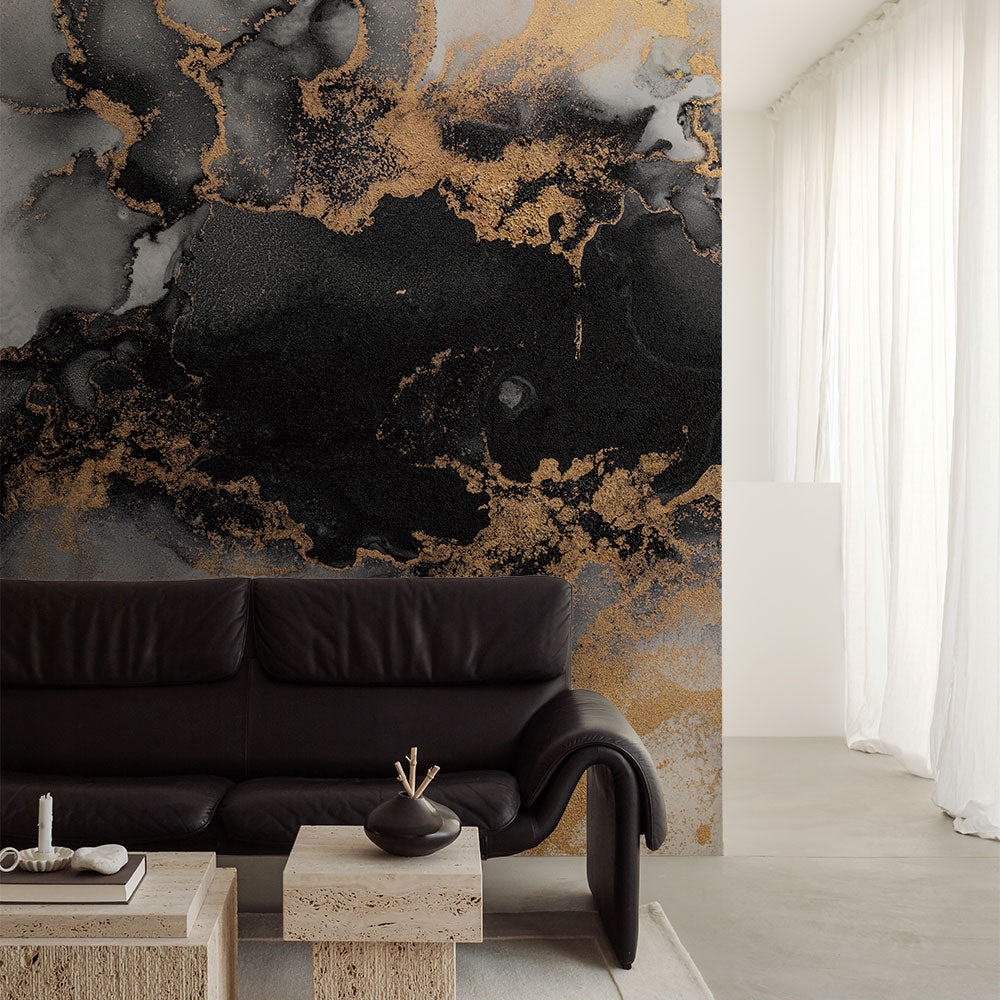 黒とゴールドが混ざりあう抽象的なアート