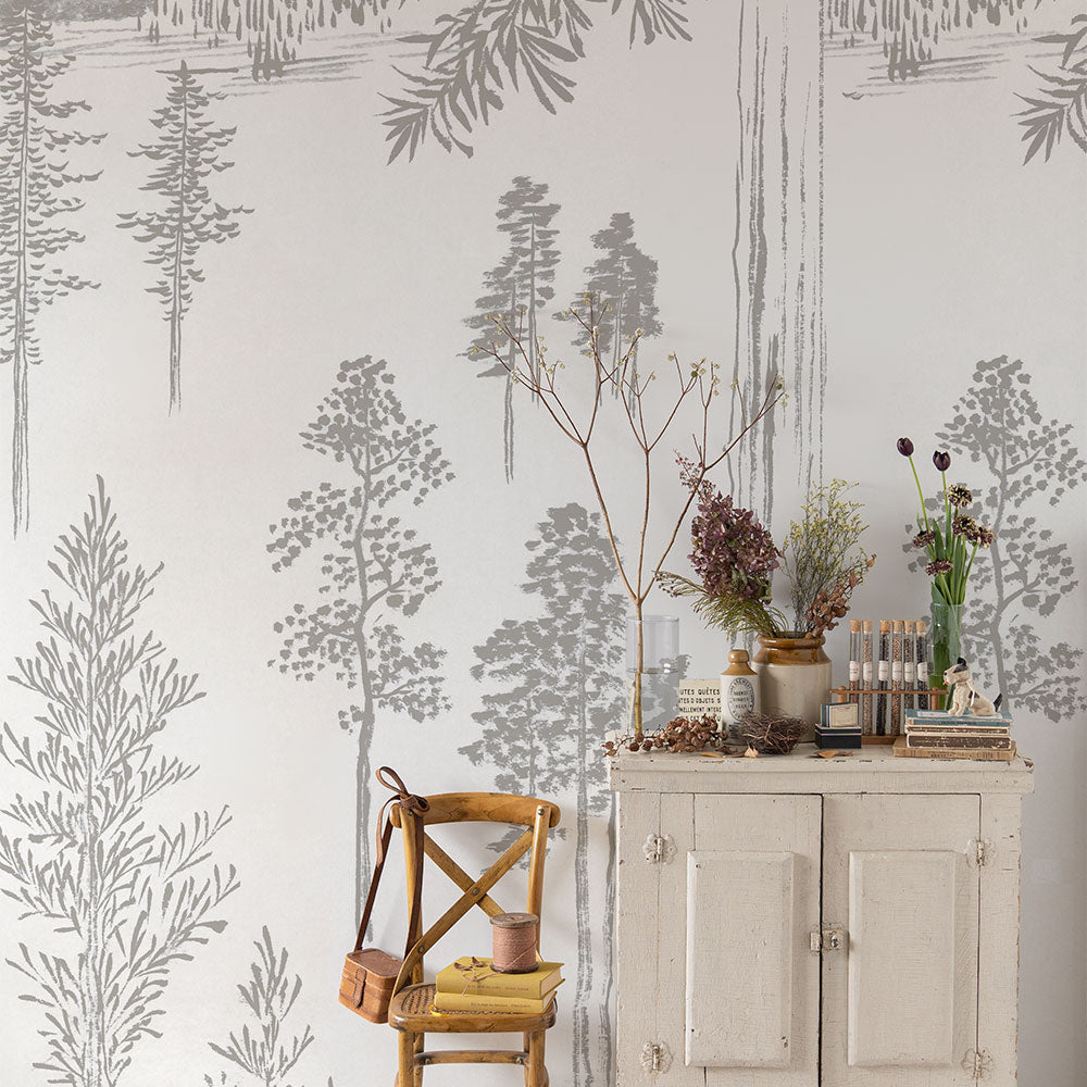 【サンプル】はがせるミューラル壁紙 シールタイプ Pine Trees Sketches Gray TSO-G00193