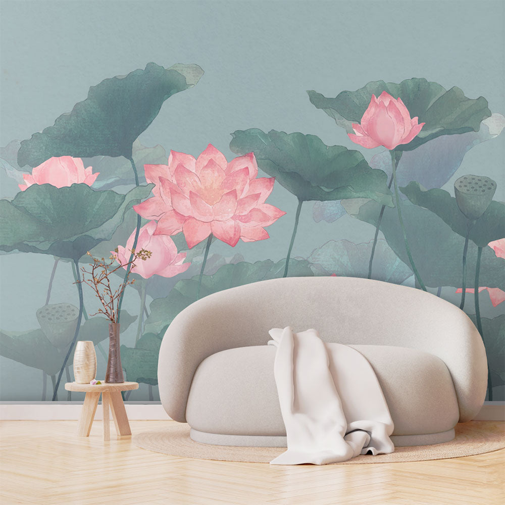 【サンプル】はがせるミューラル壁紙 シールタイプ Lotus Garden Jade TSO-G00196