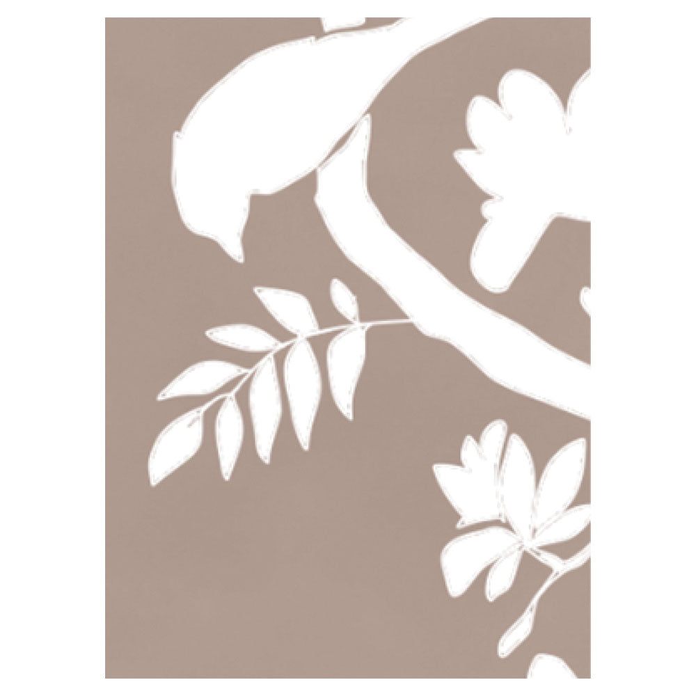 シノワズリな植物と鳥のデザインをインテリアに合わせやすいくすみカラー1色で表現