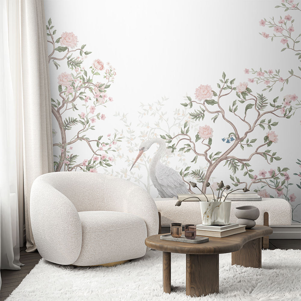 シノワズリな植物と鳥のデザイン