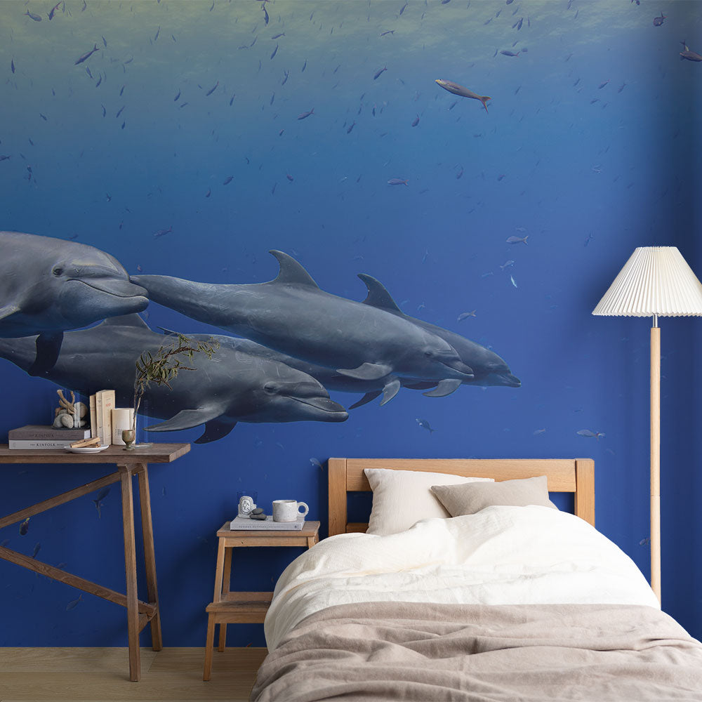 【サンプル】はがせるミューラル壁紙 シールタイプ 海の景色壁紙 鍵井靖章 バンドウイルカ(ソコロ諸島メキシコ) TSO-K00003