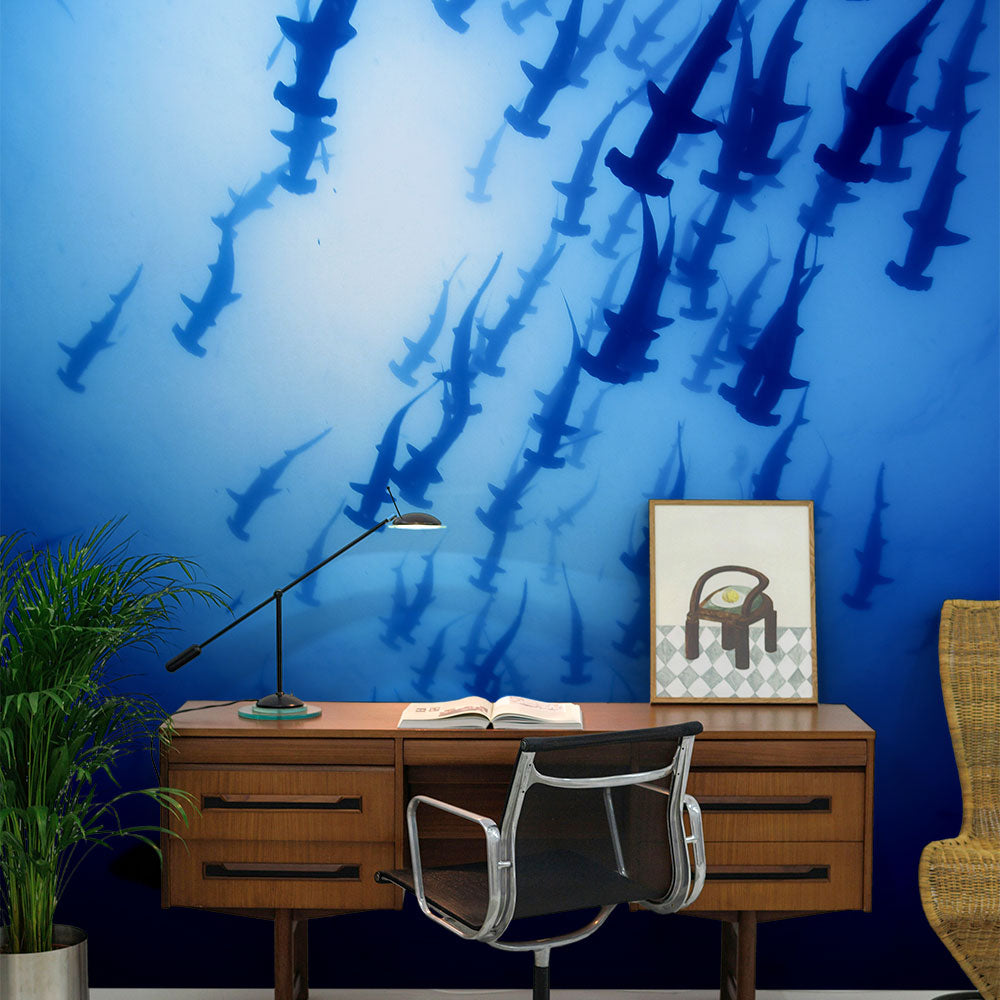【サンプル】はがせるミューラル壁紙 シールタイプ 海の景色壁紙 鍵井靖章 ハンマーヘッドシャーク(ココ島コスタリカ) TSO-K00012