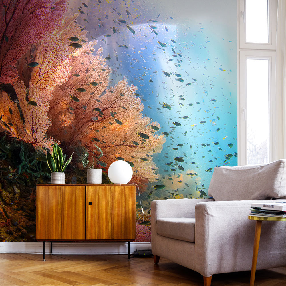【サンプル】はがせるミューラル壁紙 シールタイプ 海の景色壁紙 鍵井靖章 イソバナと光(ラジャアンパット) TSO-K00022