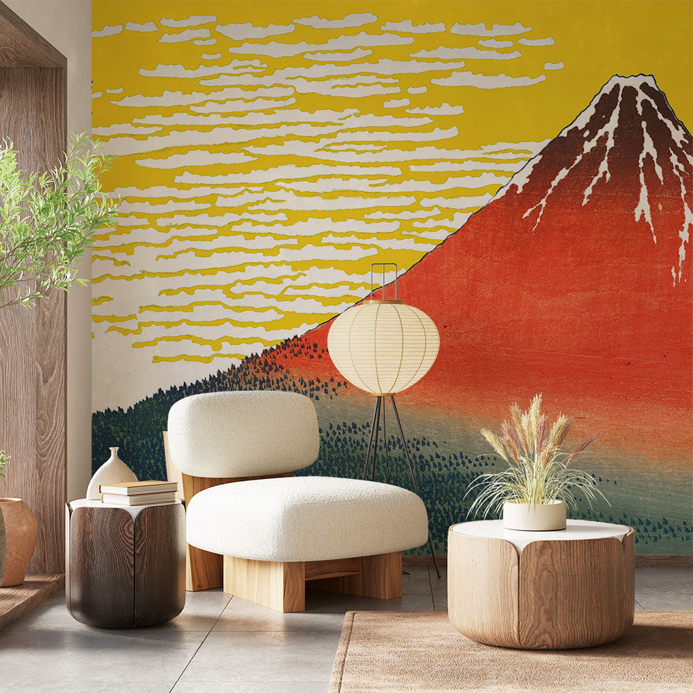 【サンプル】はがせるミューラル壁紙 シールタイプ 葛飾北斎 富嶽三十六景 凱風快晴(イエロー背景) TSO-M00004