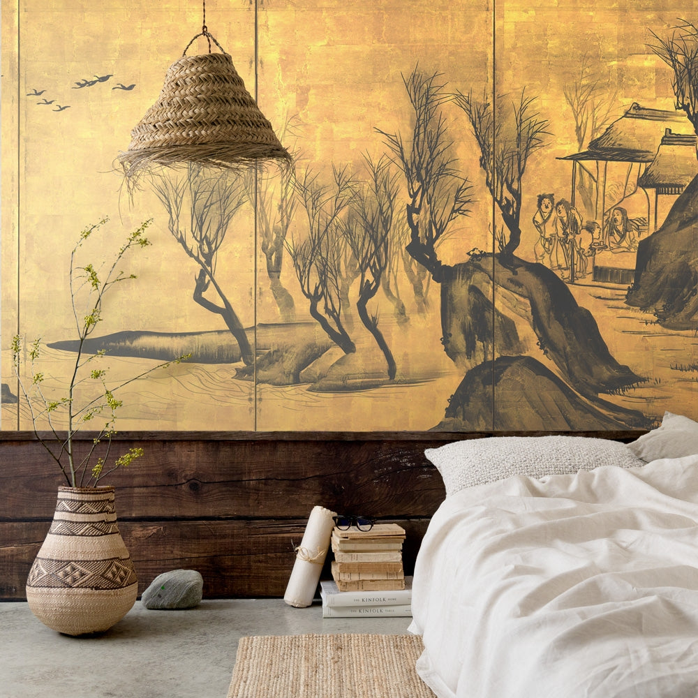 【サンプル】はがせるミューラル壁紙 シールタイプ 長澤蘆雪 山水唐人物図屏風(右隻) TSO-N00073