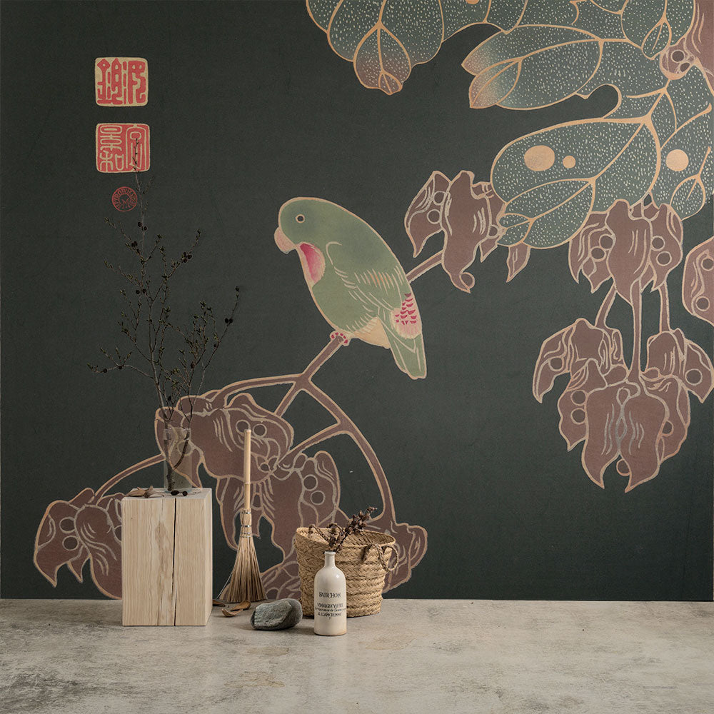 【サンプル】はがせるミューラル壁紙 シールタイプ 伊藤若冲 青桐に砂糖鳥図 TSO-N00082