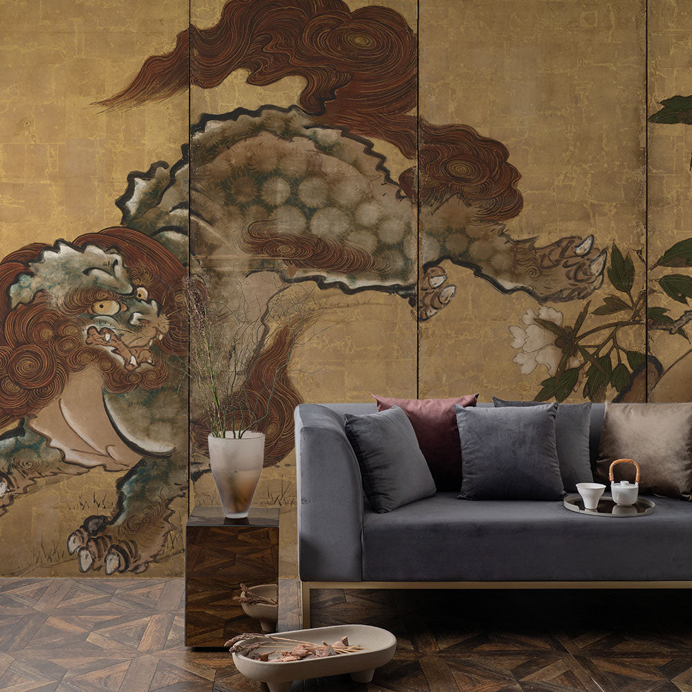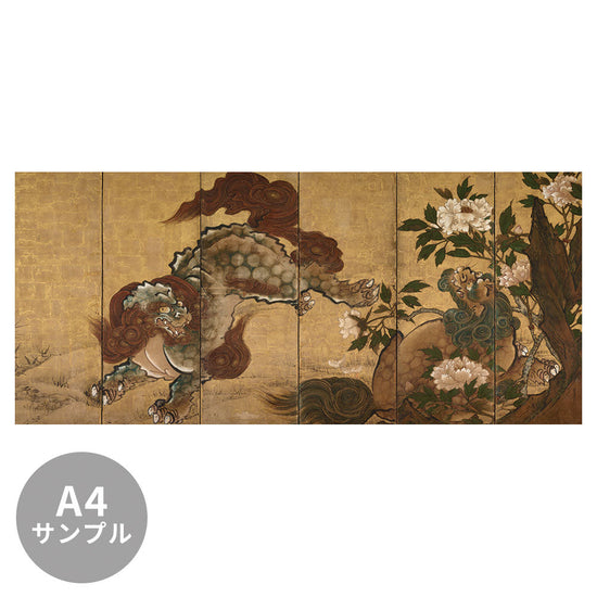 【サンプル】はがせるミューラル壁紙 シールタイプ 山口 雪渓 牡丹に唐獅子と竹に虎図屏風 右隻 TSO-N00100