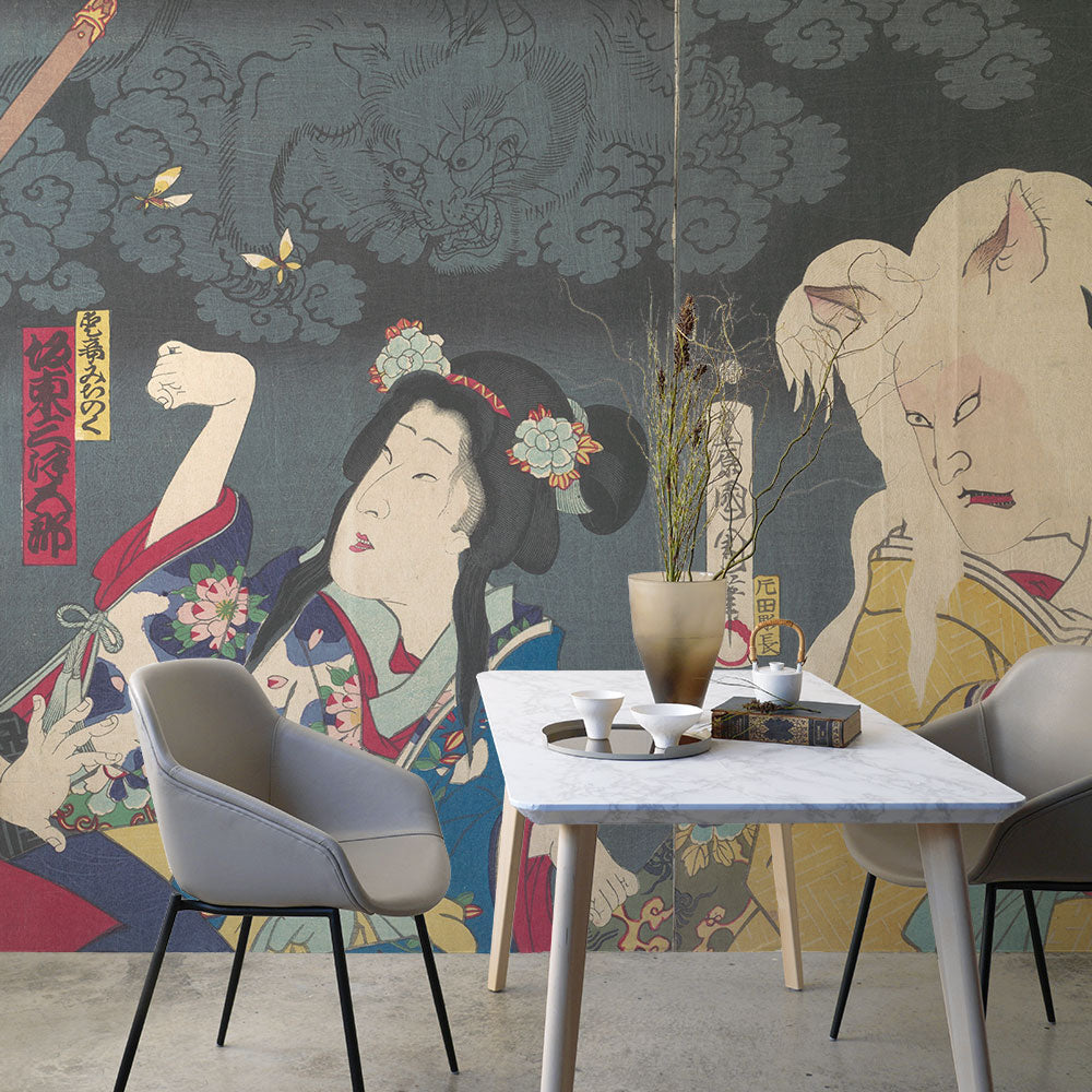 【サンプル】はがせるミューラル壁紙 シールタイプ 豊原国周 東海寄談音児館 TSO-N00113