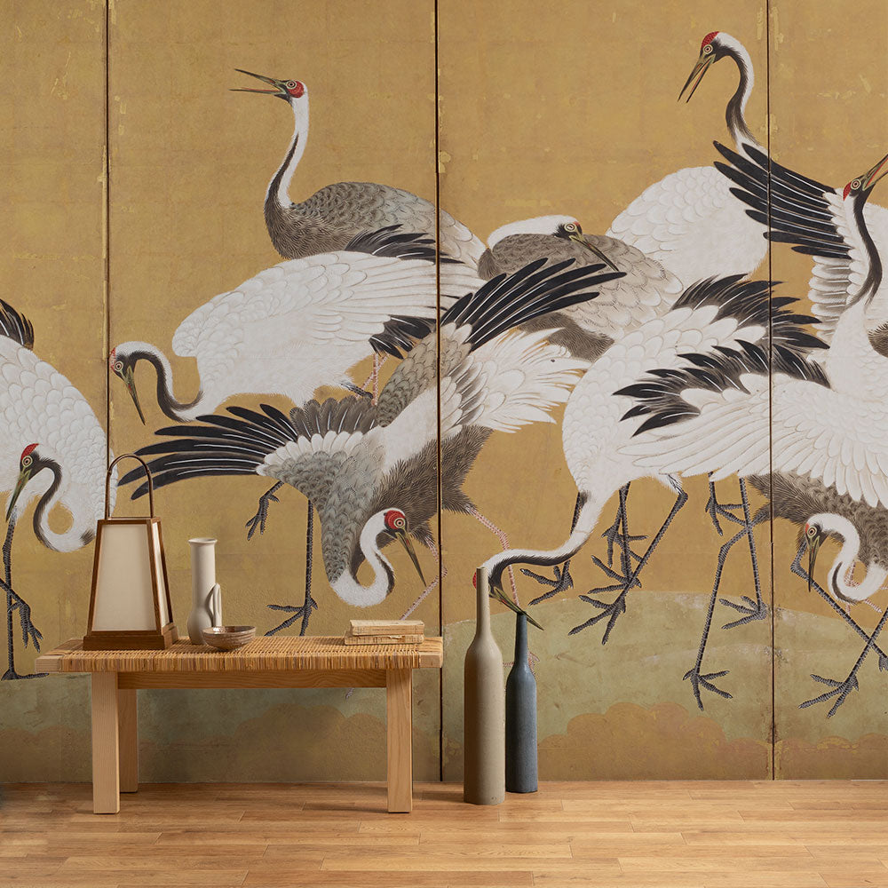【サンプル】はがせるミューラル壁紙 シールタイプ 石田幽汀 郡鶴図 右隻 TSO-N00128