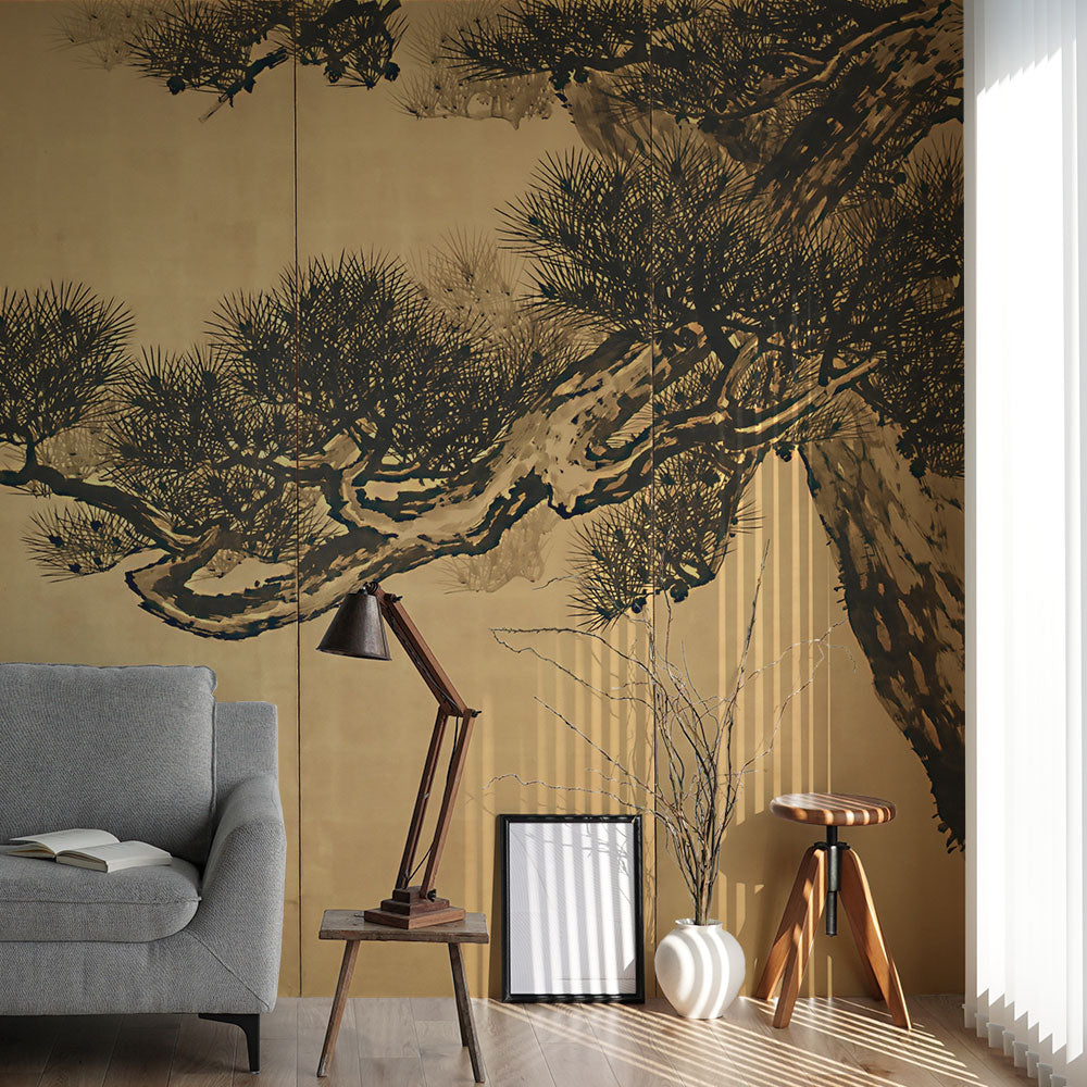 【サンプル】はがせるミューラル壁紙 シールタイプ 鈴木松年 老松図屏風 TSO-N00133