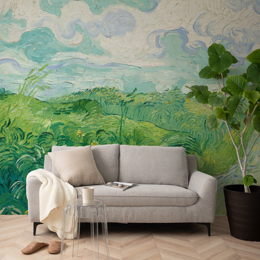 【サンプル】はがせるミューラル壁紙 シールタイプ ゴッホ 緑の麦畑、オーヴェール TSO-S00027