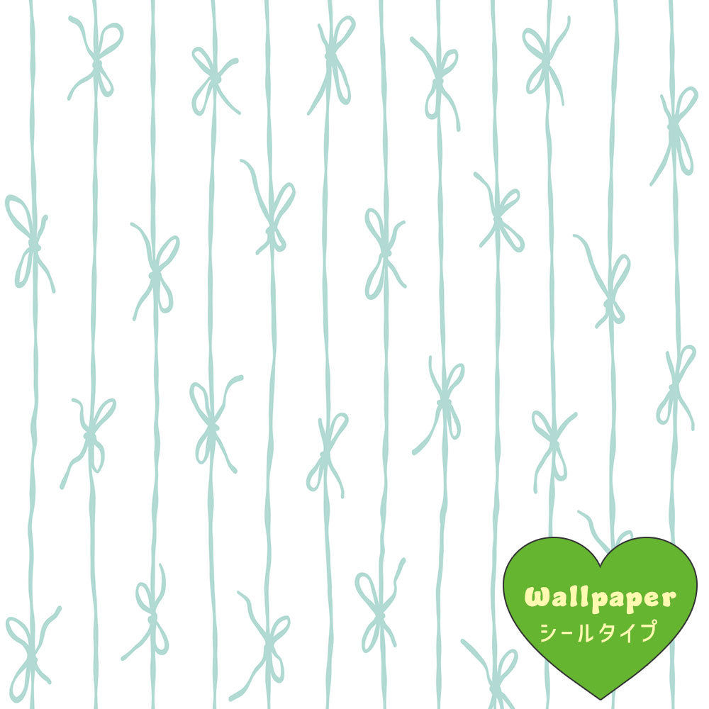 【サンプル】はがせる壁紙 シールタイプ What's poppin? リボンストライプ ナチュラル ミント