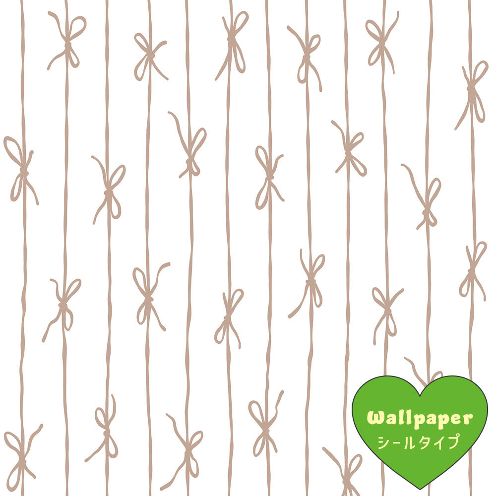 【サンプル】はがせる壁紙 シールタイプ What's poppin? リボンストライプ ナチュラル モカ
