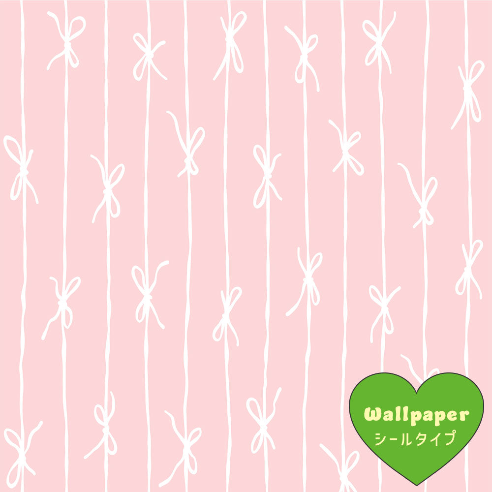 【サンプル】はがせる壁紙 シールタイプ What's poppin? リボンストライプ ナチュラル チェリー