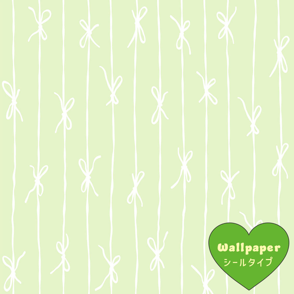 【サンプル】はがせる壁紙 シールタイプ What's poppin? リボンストライプ ナチュラル ピスタチオ